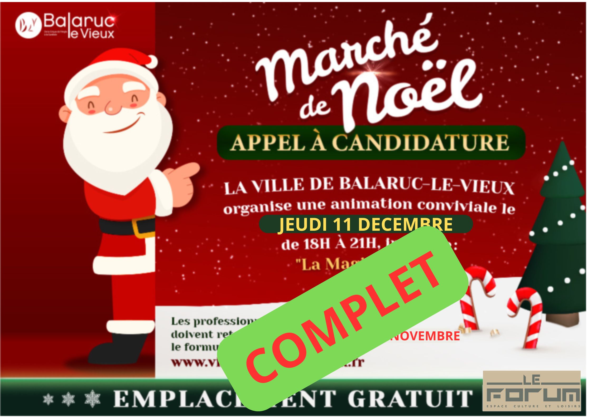 Et également un Marché de Noël avec la présence de quelques stands « associatifs » et de vendeurs professionnels : Les produits en vente devront respecter la thématique de Noël ou correspondre à la mise en valeur du terroir, de l’artisanat ou des saveurs gourmandes, …