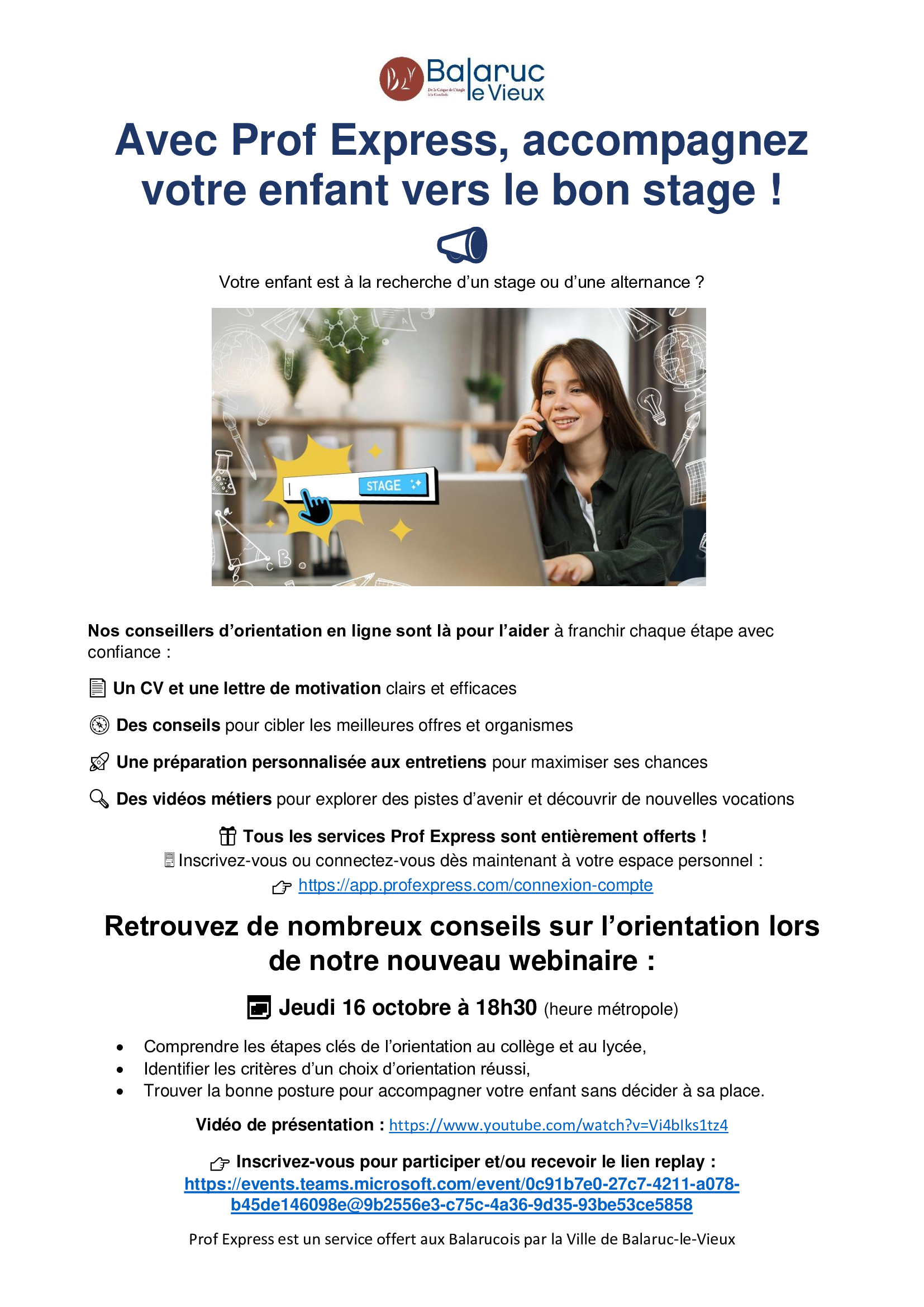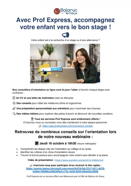 Prof Express est un service offert par la Ville de Balaruc-le-Vieux à ses habitants.