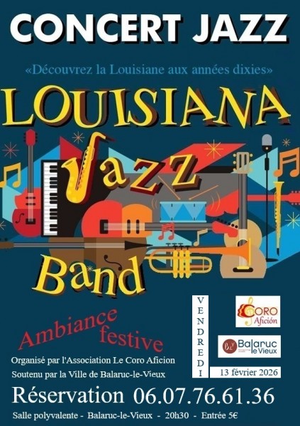 L'association "Le Coro Aficion" vous propose Boeuf jazz musical, le "Louisiane 5 têtes jazz band"